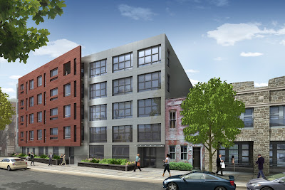 Developers have released new renderings of the condos that will take up the largest vacant lot on Champlain Street.   Federal Capital Partners and Altus Realty Partners will break ground shortly on a 41-unit condominium at 2337 Champlain Street, NW, in Adams Morgan.  Designed by PGN Architects, the renderings show a contemporary structure with a split facade adjacent to the former brass knob warehouse.